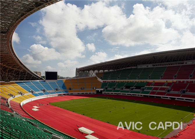 Traits caractéristiques: le Centre du sport olympique de Guiyang possède 51636 de places, avec 6 étages et le hauteur de la couverture est de 52.25m. La tribune de spectacle est con?ue de fa?on enfermée, dont l'est est construit tout au long de la montagne, et l'ouest se constitue de 6 étages y compris zone de VIP, zone des sportifs, zone de média, salle de gymnastique, et des salles techniques auxiliaire